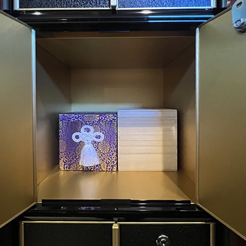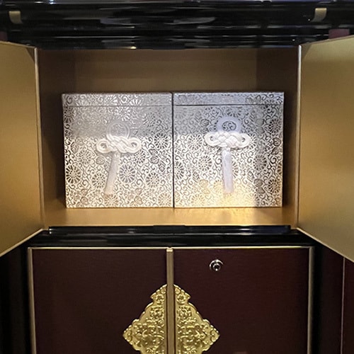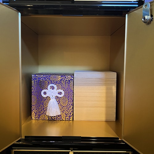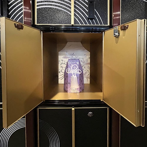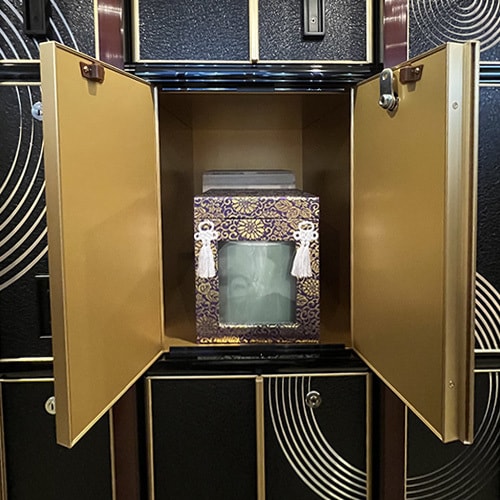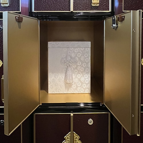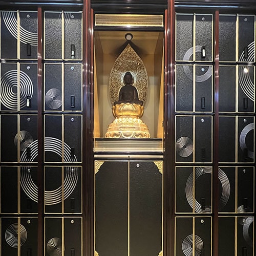 2.ご本尊のそばで供養:常に仏様に見守られ、日々の読経の中で手厚く供養される空間。